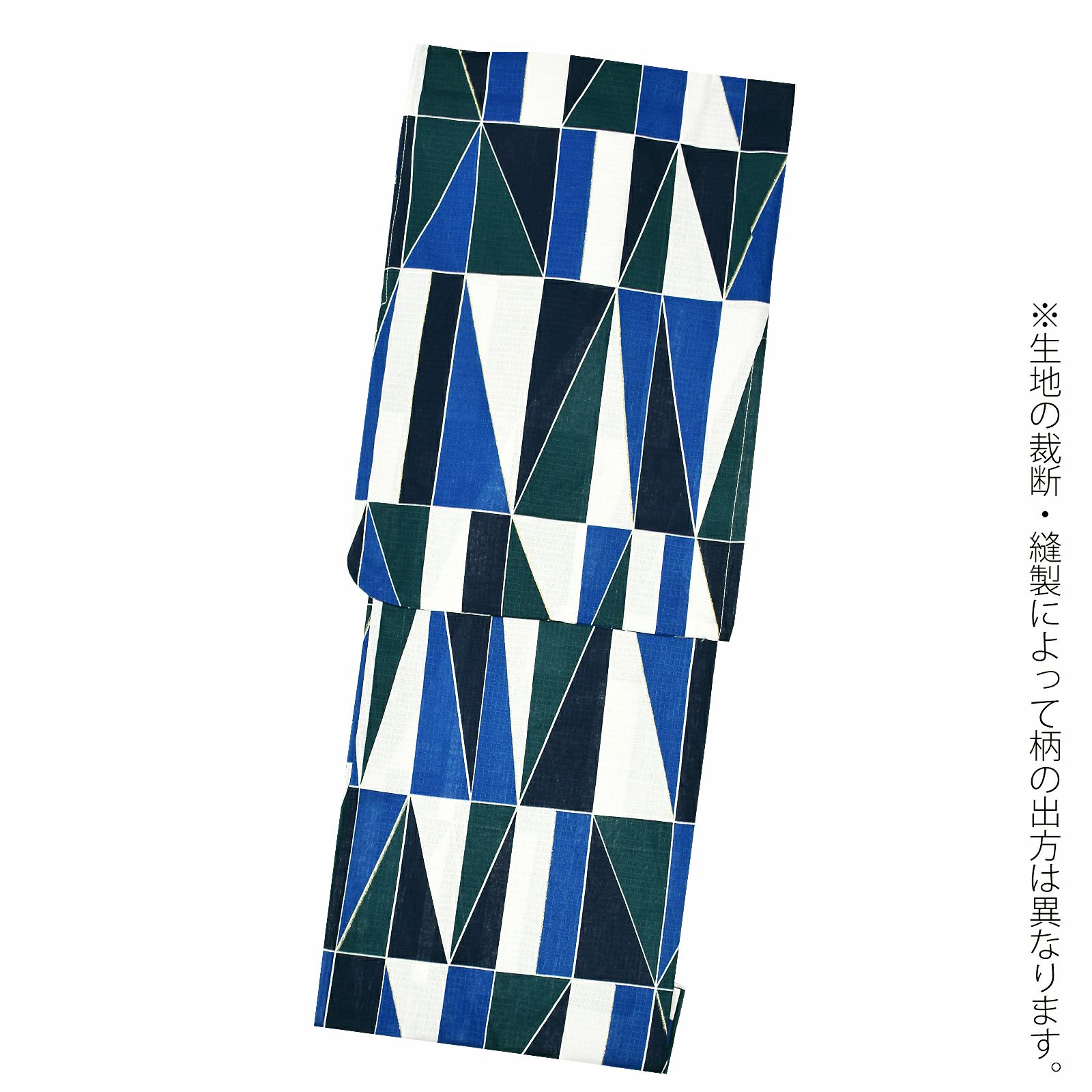 【色柄】白地に深い紺、ブルーや深緑色の三角の幾何学模様。ところどころに引かれた金色のラインがキリっとシャープな印象。