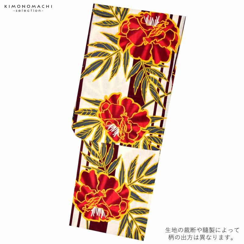 浴衣 レディース 単品 「オフホワイト 縞に牡丹」 フリーサイズ レトロ モダン 大人柄 女性浴衣単品 yukata