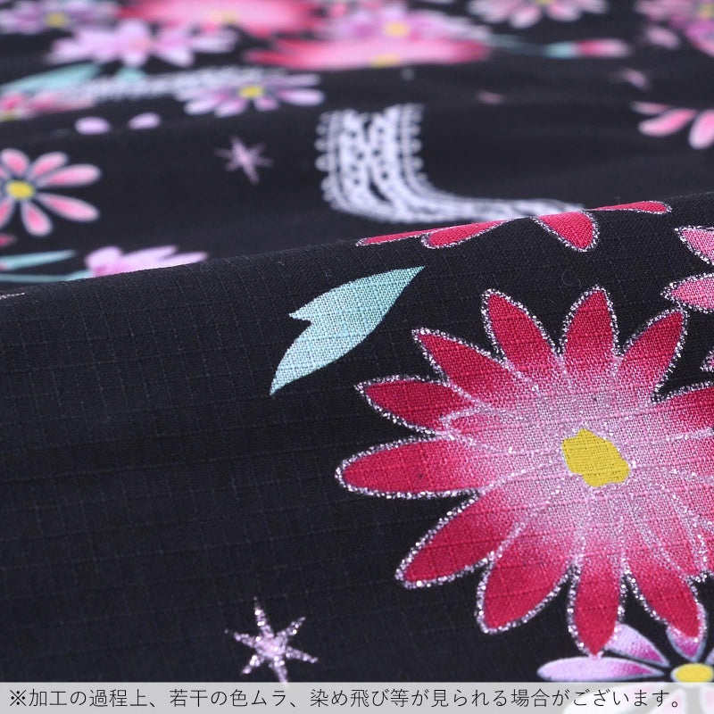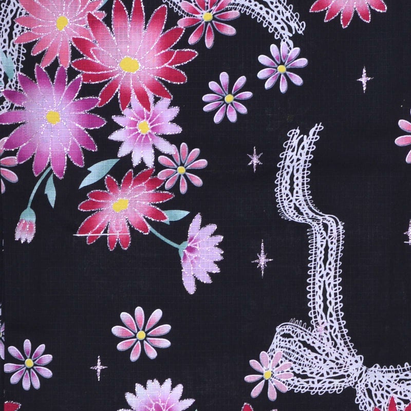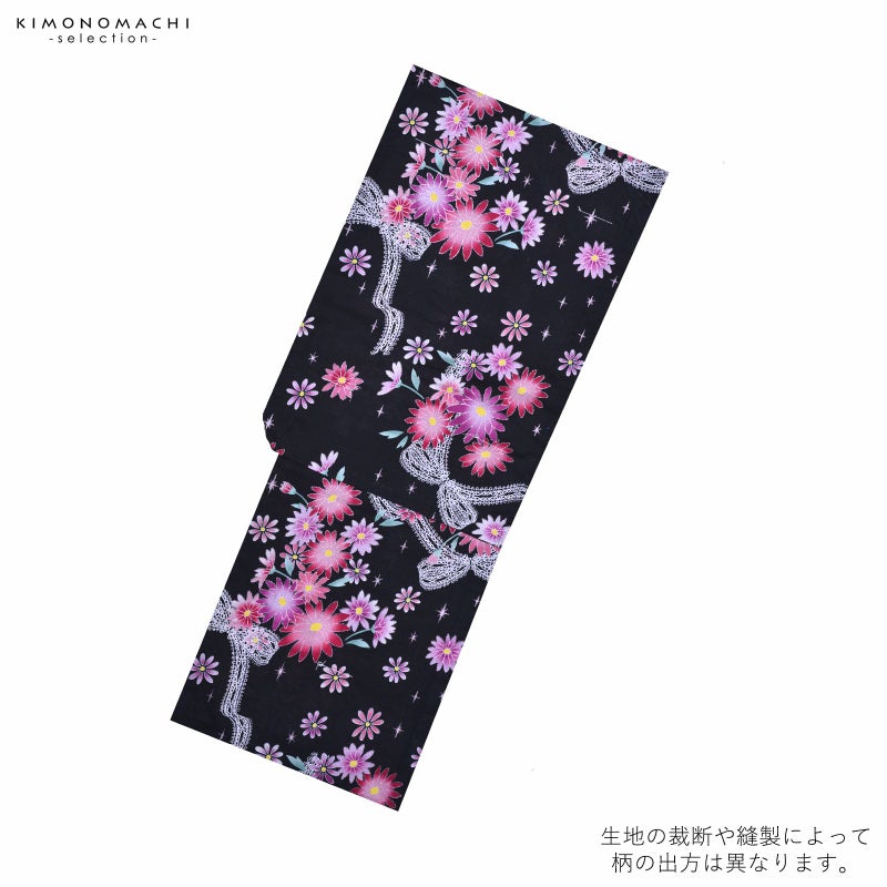 浴衣 レディース 単品 「変わり生地浴衣黒 リボンとマーガレット」 フリーサイズ yukata 【メール便不可】