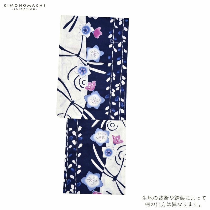 浴衣 レディース 単品 「生成り地にトンボ 桔梗」 フリーサイズ yukata 【メール便不可】