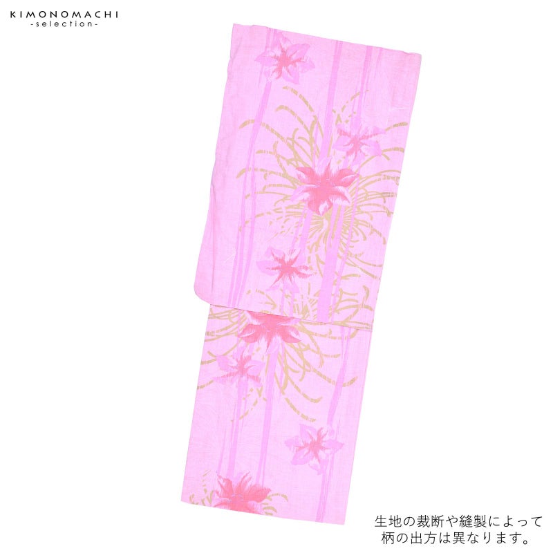 浴衣 レディース 単品 「ピンク地にユリ」 F フリーサイズ yukata