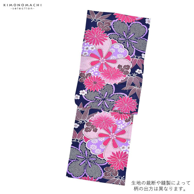 浴衣 レディース 単品 「紺 菊と笹の葉」 フリーサイズ yukata