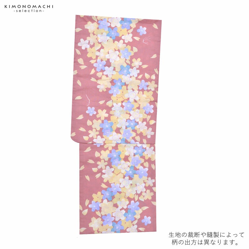 浴衣 レディース 単品 「夏ごころ浴衣 薄茶色 黄色、水色桜」 フリーサイズ yukata 【メール便不可】