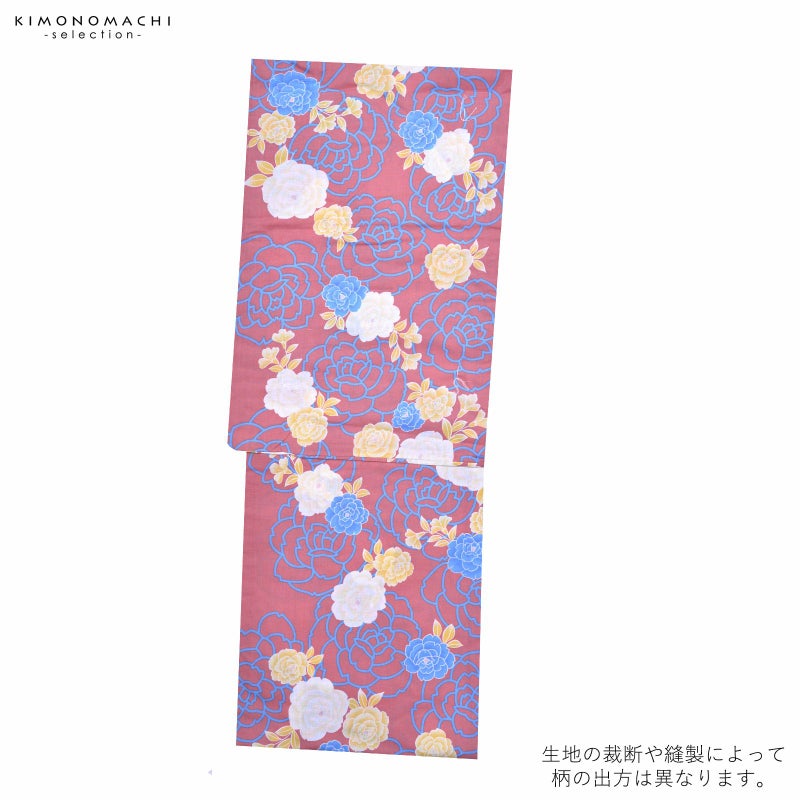 浴衣 レディース 単品 「夏ごころ浴衣 薄茶色 黄色、水色の薔薇」 フリーサイズ yukata 【メール便不可】