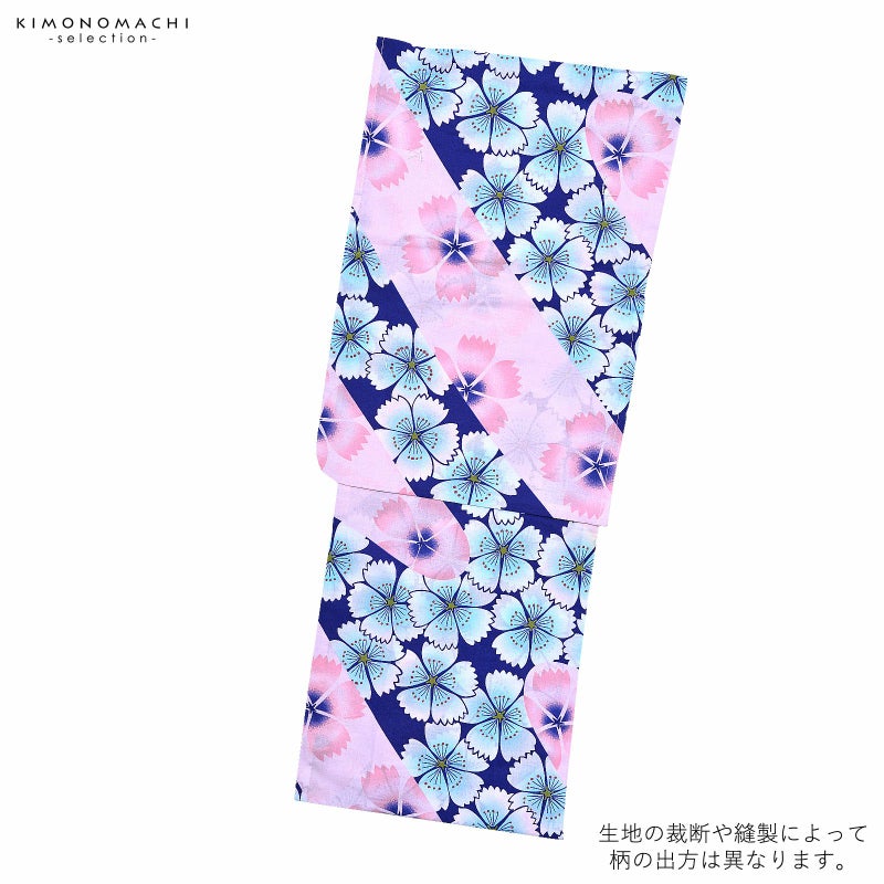 浴衣 レディース 単品 「夏ごころ浴衣 紺 ピンクと青の撫子」 フリーサイズ yukata