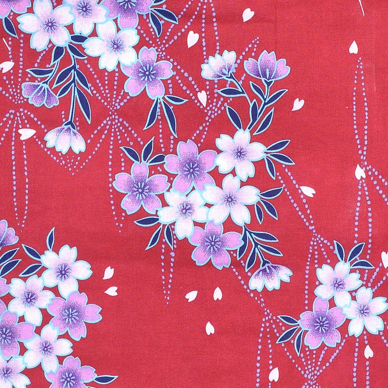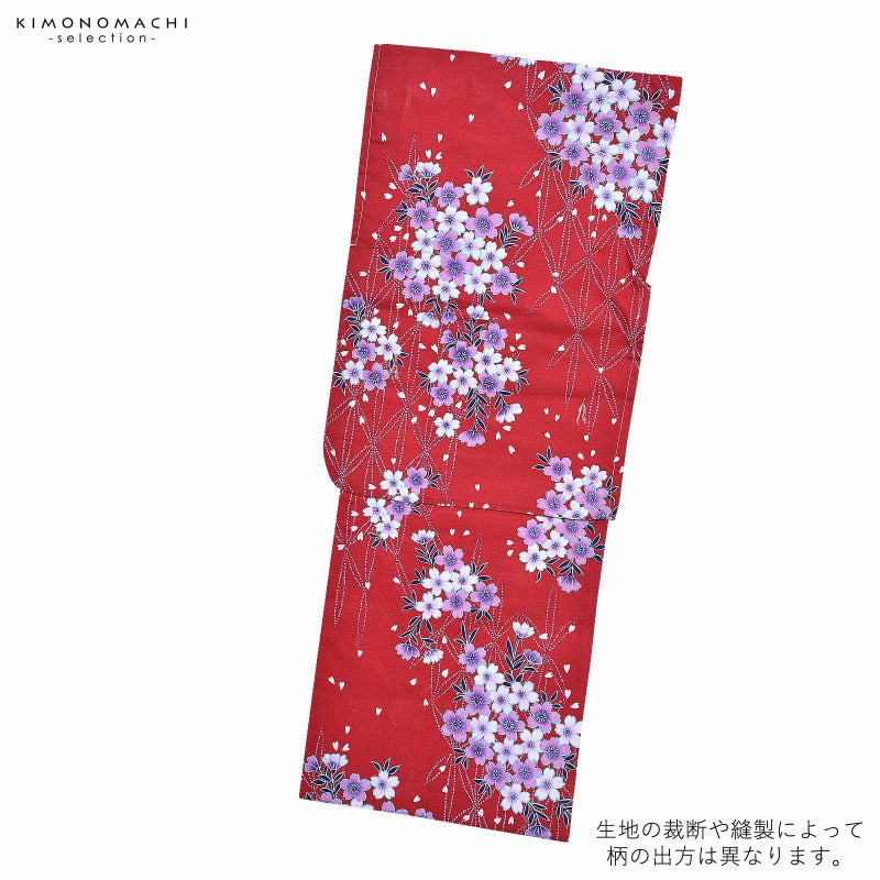 浴衣 レディース 単品 「夏ごころ浴衣 赤 ピンクと白の桜」 フリーサイズ yukata 【メール便不可】