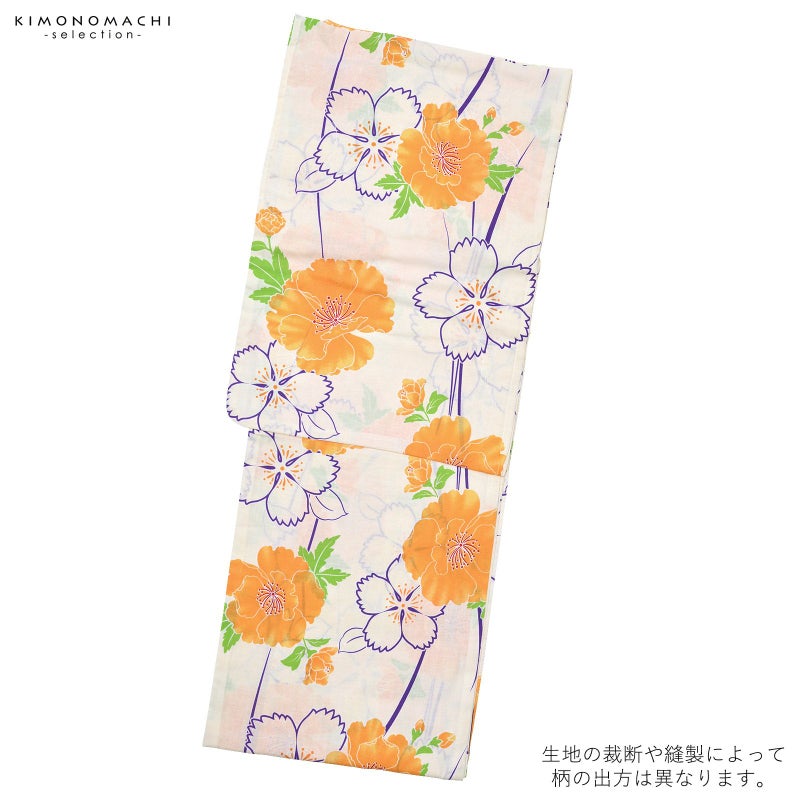 浴衣 レディース 単品 「Ma-ni クリーム オレンジの桜と撫子」 フリーサイズ yukata 【メール便不可】