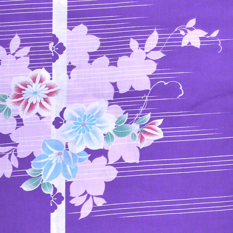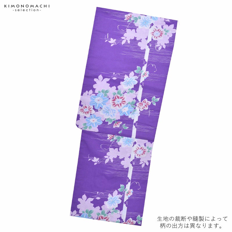 浴衣 レディース 単品 「夏ごころ浴衣 紫 鉄線」 フリーサイズ yukata