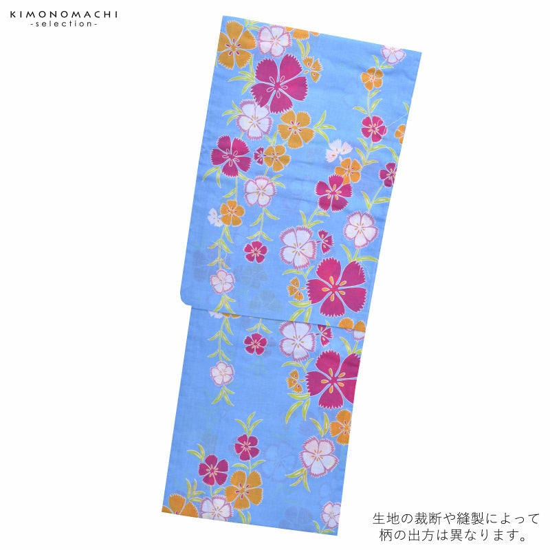浴衣 レディース 単品 「Ma-ni 水色×マゼンタ 縦桜」 フリーサイズ yukata 【メール便不可】