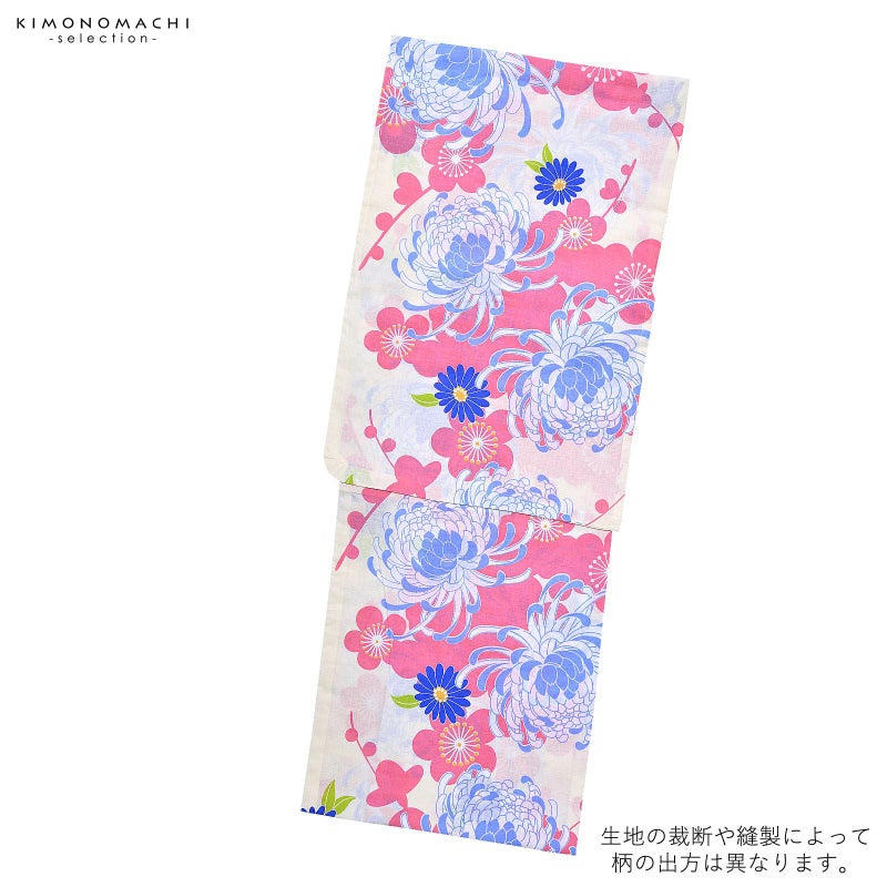 お祭り、花火大会、盆踊りに!涼し気な女性浴衣単品 大人かわいい 新作浴衣 【Prices down2】浴衣 レディース 単品 「Ma-ni クリーム 薄青×ピンク 菊と梅」 フリーサイズ yukata 【メール便不可】ss2506ykl10