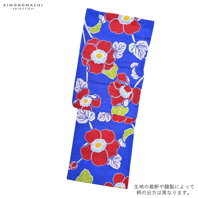 浴衣 レディース 単品 「Ma-ni 青地 赤い椿」 フリーサイズ yukata 【メール便不可】