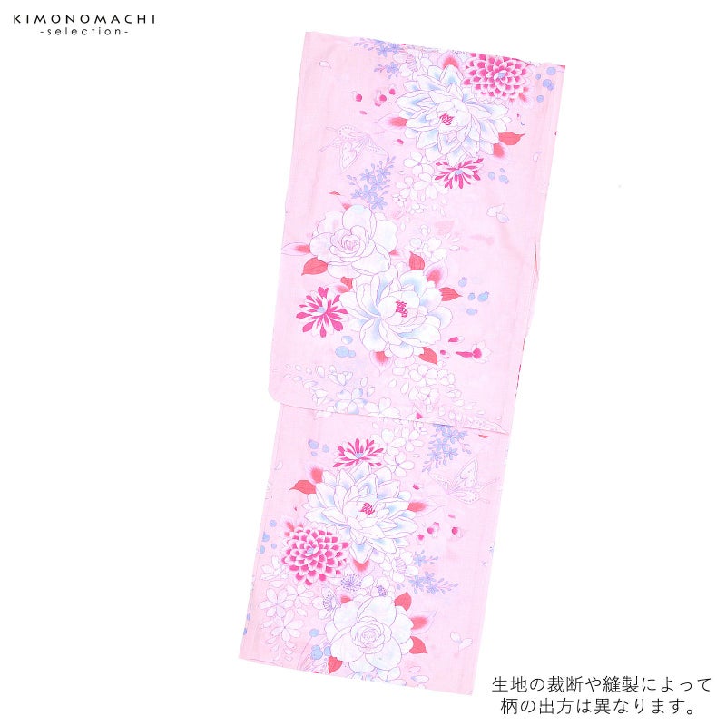 浴衣 レディース 単品 「ピンク地に牡丹と蝶」 F フリーサイズ yukata