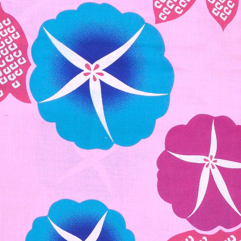 浴衣 レディース 単品 「風香 ピンク 水色、赤の朝顔」 フリーサイズ yukata