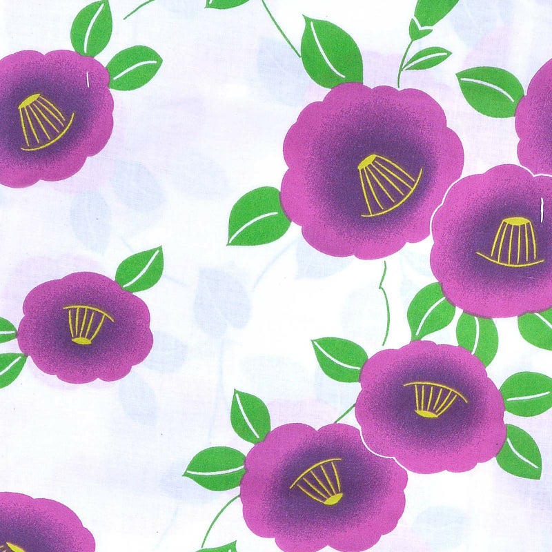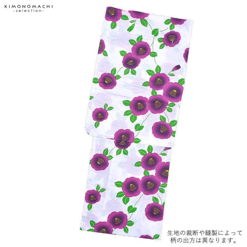 浴衣 レディース 単品 「風香 白地 紫色の椿」 フリーサイズ yukata