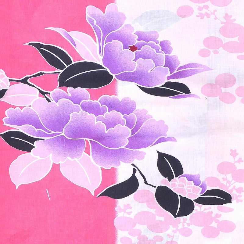 浴衣 レディース 単品 「風香 白×ピンク市松 花」 フリーサイズ yukata 【メール便不可】