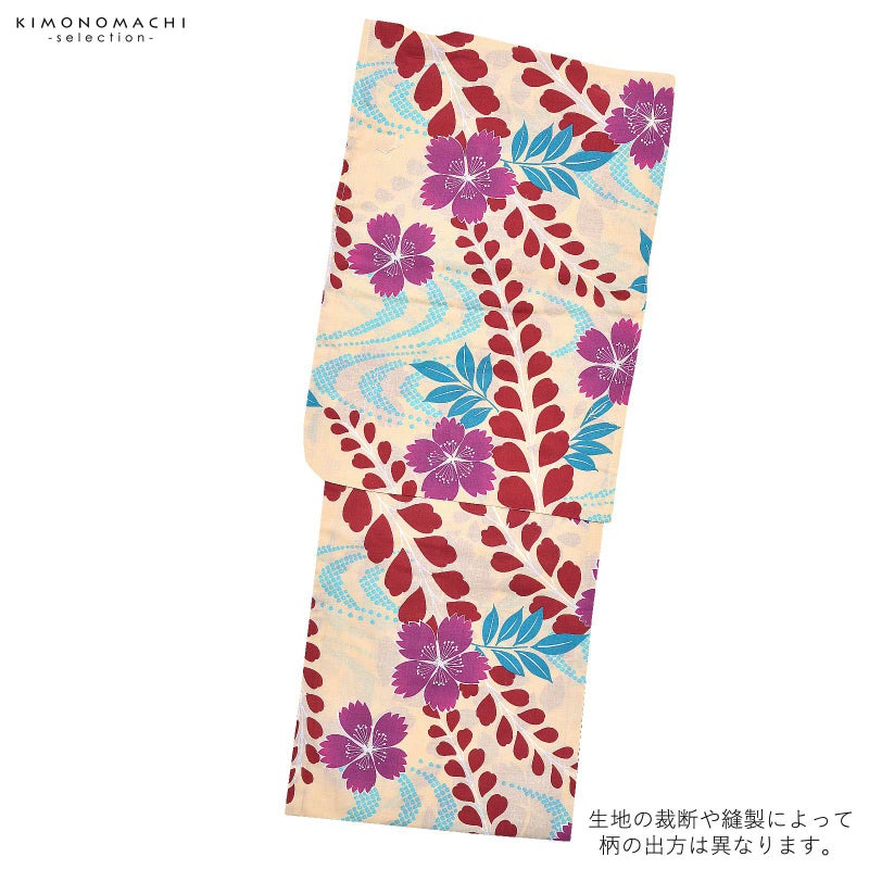 浴衣 レディース 単品 「風香 薄黄色 紫の撫子」 フリーサイズ yukata 【メール便不可】
