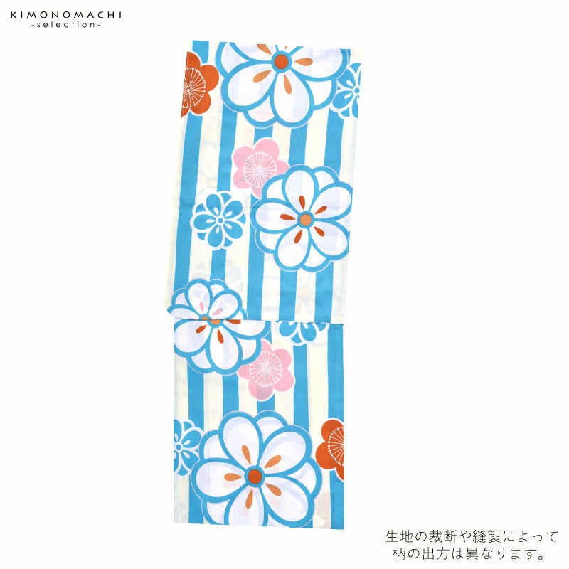 お祭り、花火大会、盆踊りに!涼し気な女性浴衣単品 大人かわいい 新作浴衣 【Prices down2】浴衣 レディース 単品 「水色×クリーム地の縞に花」 フリーサイズ yukata 【メール便不可】ss2506ykl10