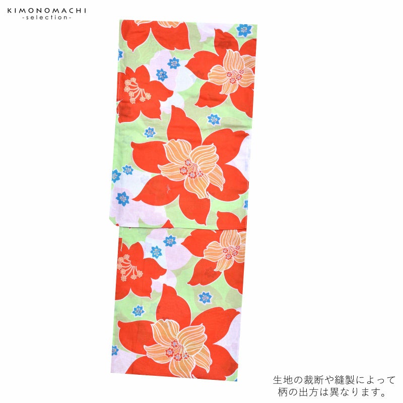 浴衣 レディース 単品 「CANOA 黄緑 オレンジの花」 フリーサイズ yukata 【メール便不可】