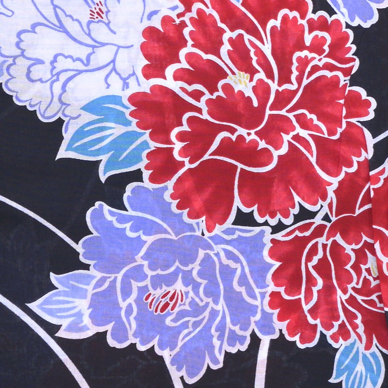 浴衣 レディース 単品 「CANOA 黒地 牡丹」 フリーサイズ yukata