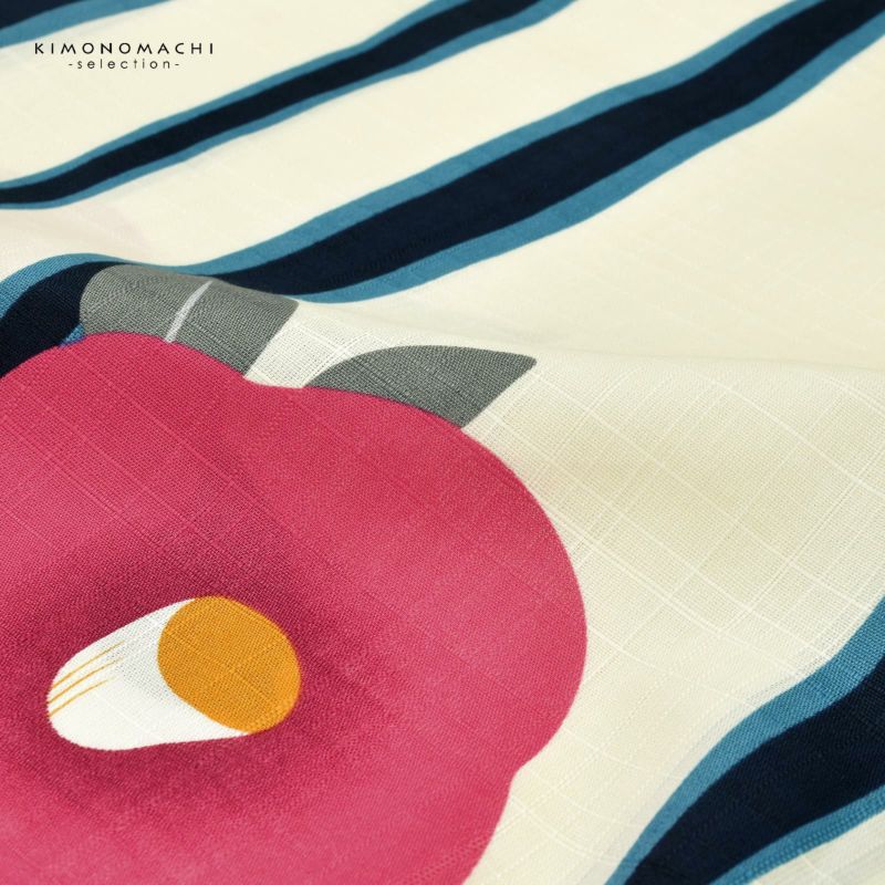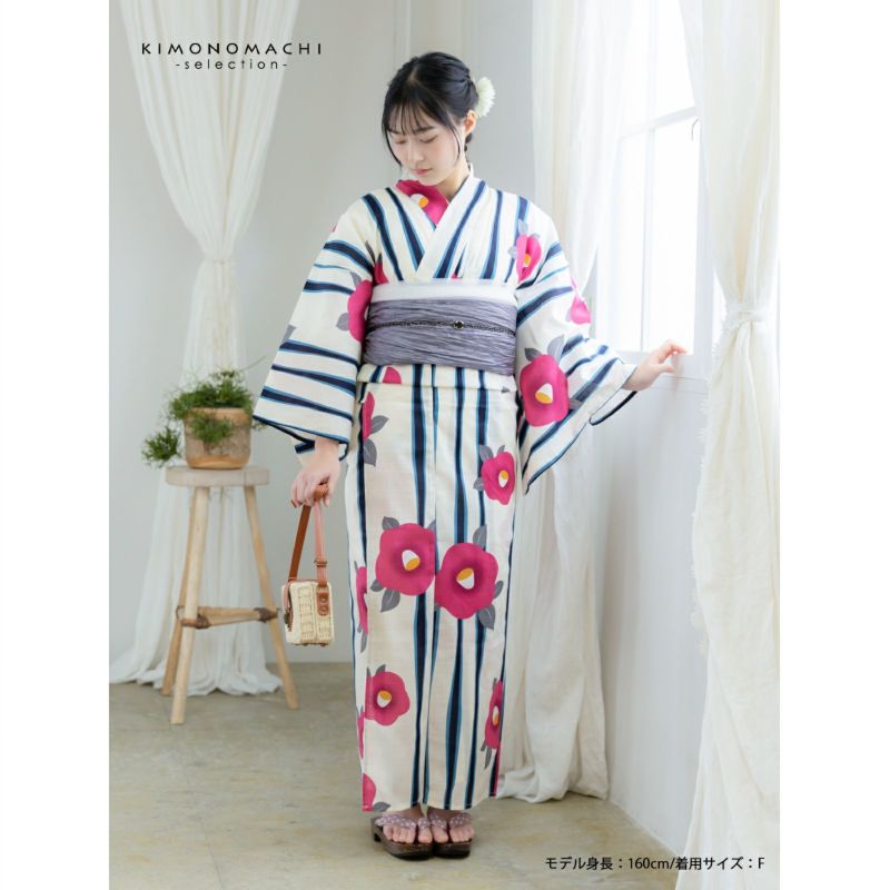 浴衣 レディース 女性浴衣単品 「薄クリーム地×ピンク よろけ縞に椿」Fサイズ 綿浴衣