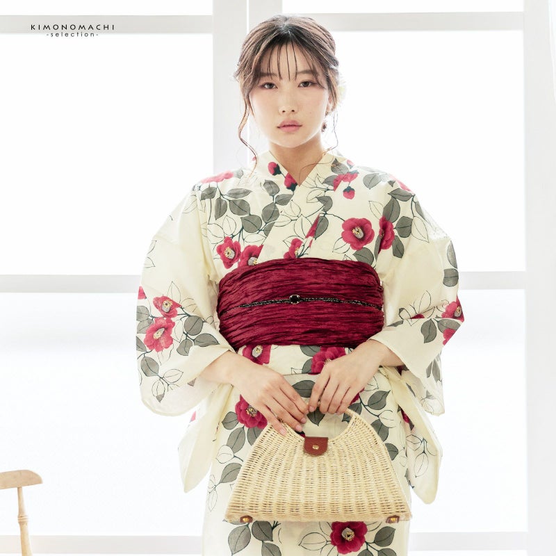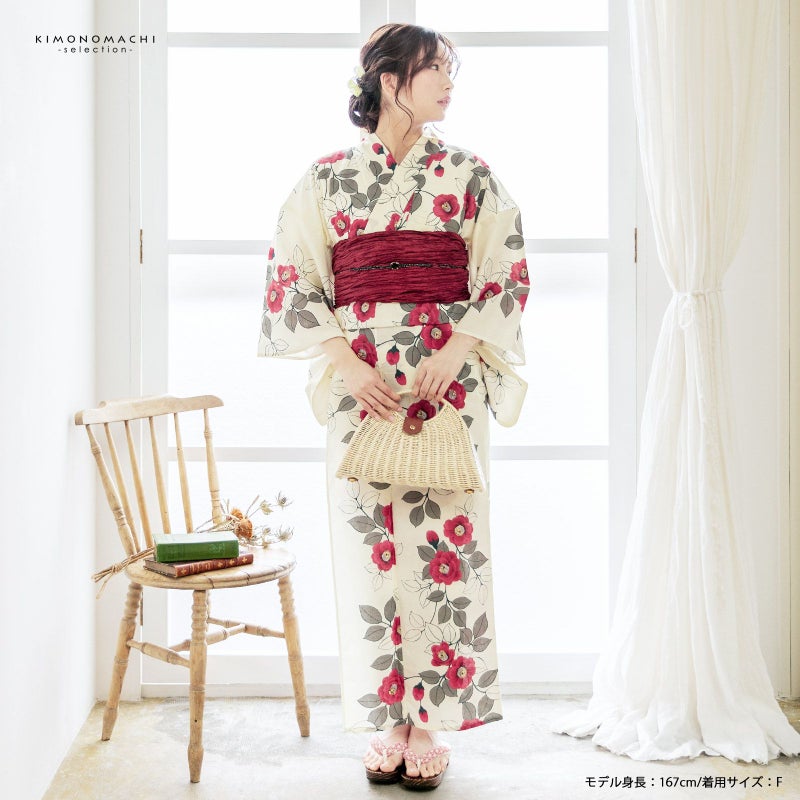 浴衣 レディース 女性浴衣単品 「アイボリー 椿」Fサイズ