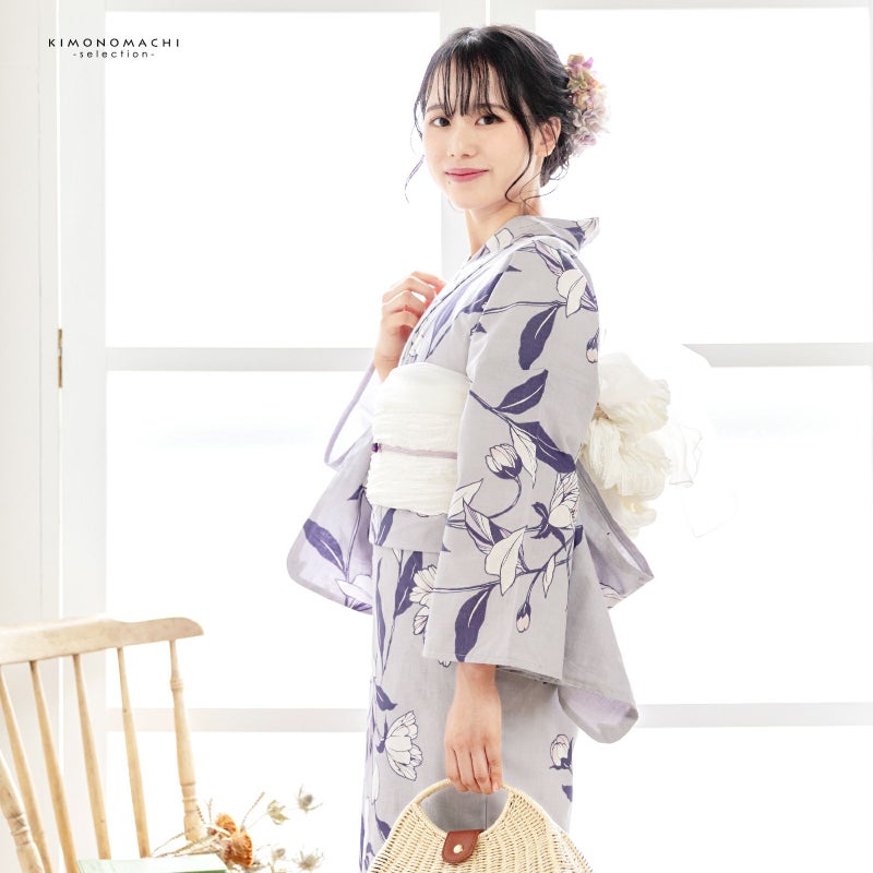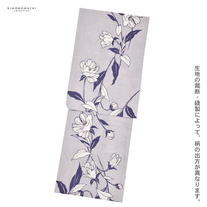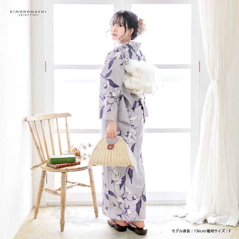 5. 浴衣 レディース 女性浴衣単品 「待宵草 グレー」綿浴衣 プレタ浴衣 お仕立て上がり浴衣 大人浴衣 Fサイズ 女性用 女性浴衣 ゆかた【メール便不可】