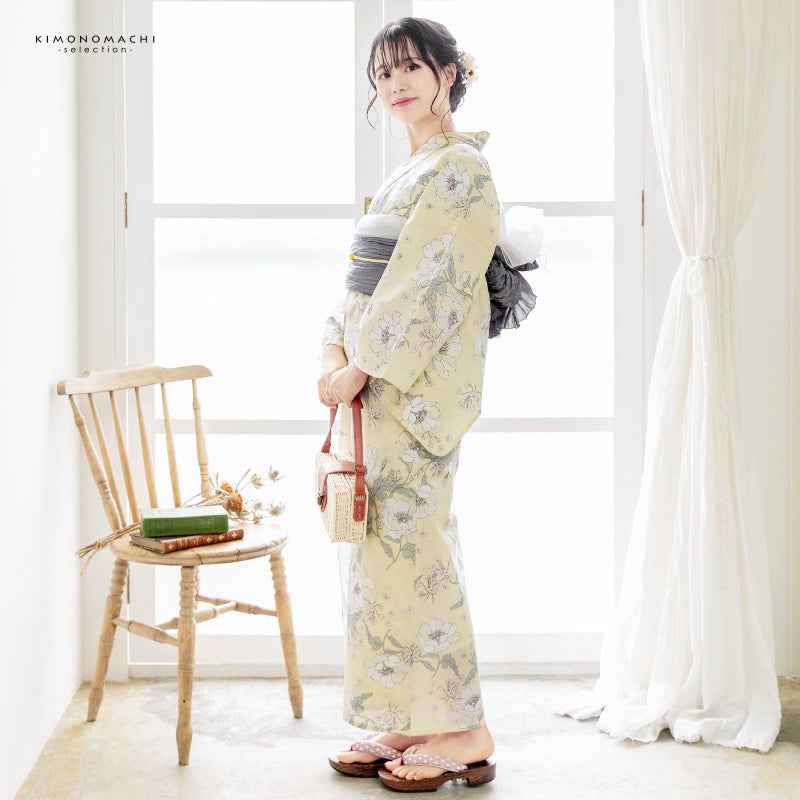 浴衣 レディース 女性浴衣単品 「レモンシフォン アネモネ」Fサイズ