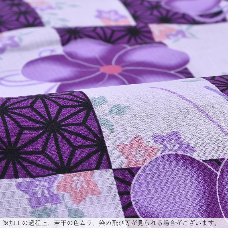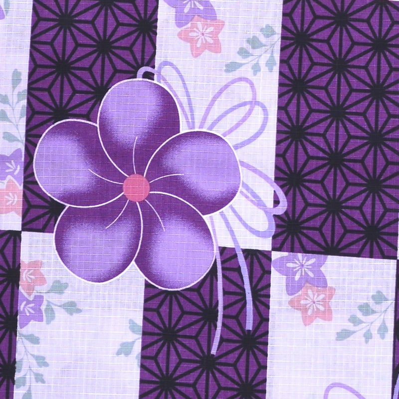 浴衣 レディース 単品 「プレタ浴衣 白×紫市松 紫の花」 フリーサイズ yukata