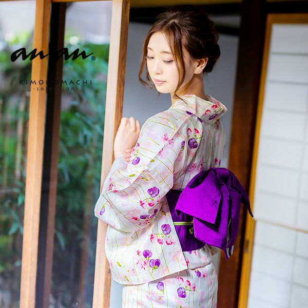 大人ブランド浴衣単品 大人の浴衣単品 【Prices down2】anan浴衣単品「ピンク、パープル フラワー」ブランド浴衣単品 女性浴衣単品 アンアン 大人浴衣単品 浴衣単品 a1803【メール便不可】ss2512ykl15