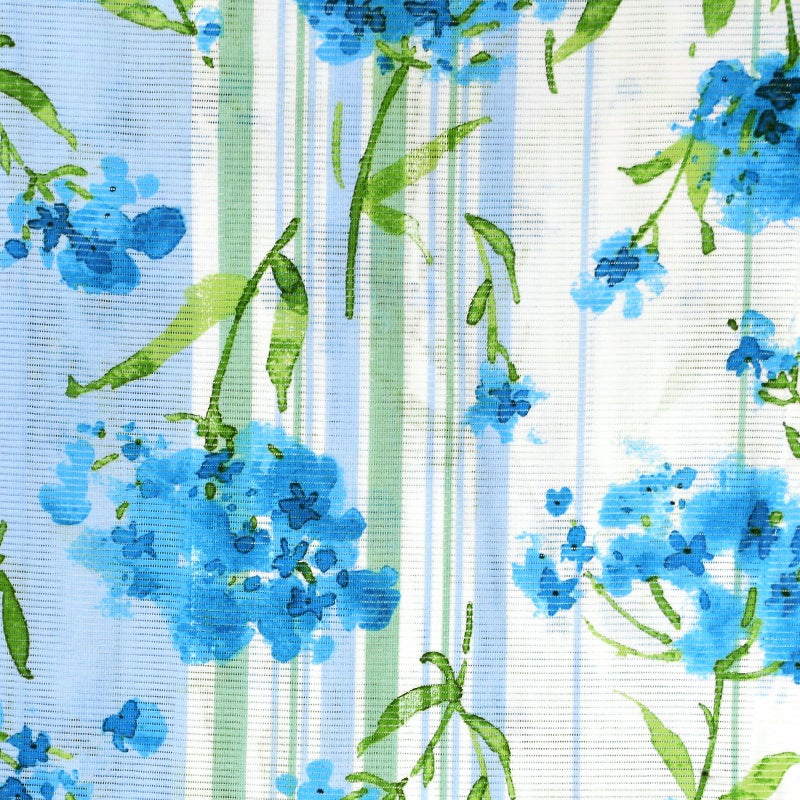 【色柄】白地に空色と淡いミントグリーンのストライプに、水色の花。爽やかな色遣いと、水彩調のにじんだようなタッチが優しい雰囲気です。