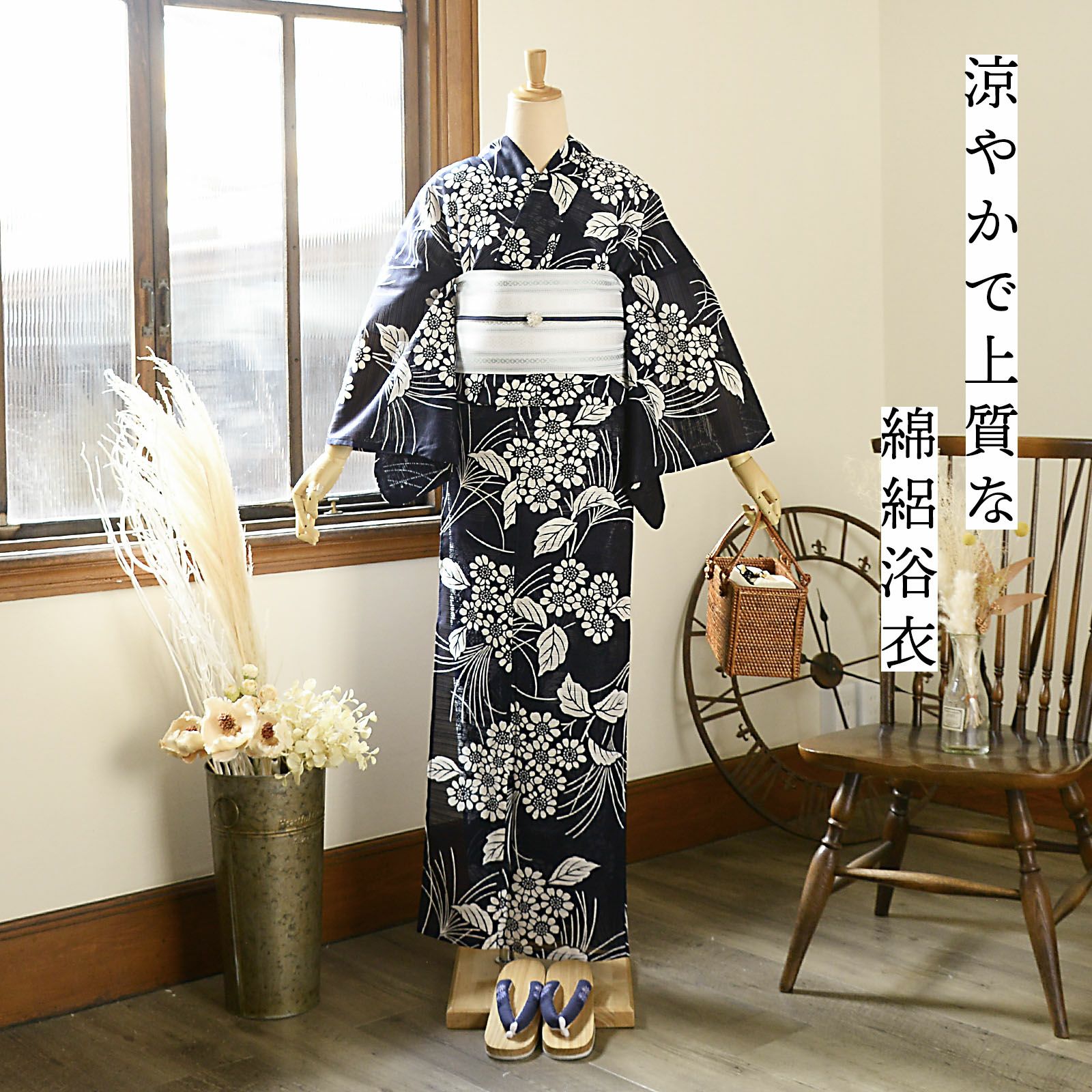 他の画像を見る 送料無料 涼やかで上質な綿絽浴衣 浴衣 レディース 単品 お仕立て上がり浴衣 綿絽浴衣「小菊とすすき 濃紺」Fサイズ シック 大人 モダン 粋 古典 ゆかた 女性 ブランド浴衣 花火大会 夏祭り 綿 絽 夏着物にも【メール便不可】 きもの町価格 ¥ 15,400 税込 カートに入れる お気に入りに登録する