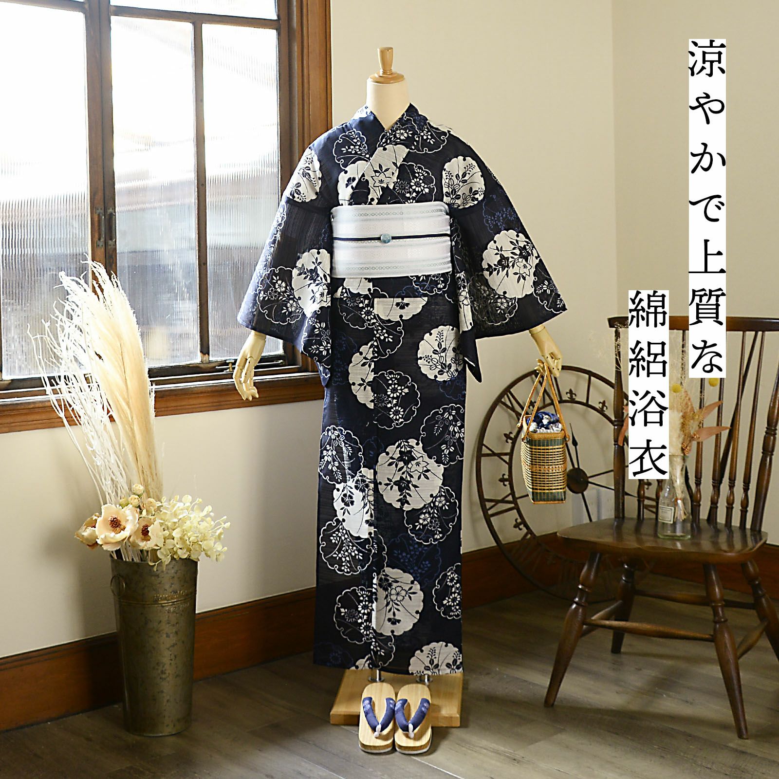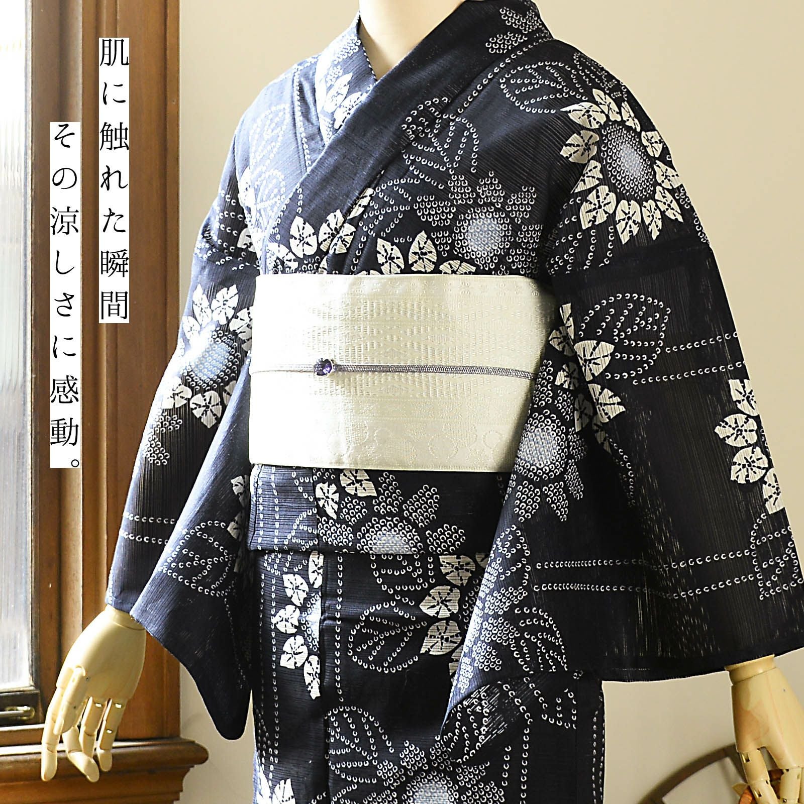 他の画像を見る 送料無料 涼やかで上質な綿絽浴衣 浴衣 レディース 単品 お仕立て上がり浴衣 綿絽浴衣「雪輪、秋草 濃紺」Fサイズ シック 大人 モダン 粋 古典 ゆかた 女性 ブランド浴衣 花火大会 夏祭り 綿 絽 夏着物にも【メール便不可】 きもの町価格 ¥ 15,400 税込 カートに入れる お気に入りに登録する