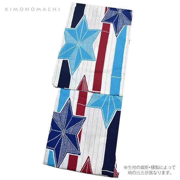 【Prices down2】女性浴衣単品「青×赤×白 縞に麻の葉」綿浴衣 女性浴衣 フリー 綿 お仕立て上がり浴衣 7FS-H1-23【メール便不可】ss2506ykl10