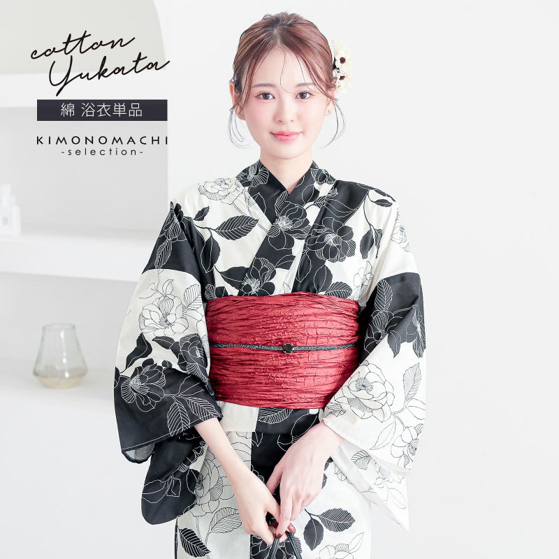 浴衣 レディース 女性浴衣 単品「黒×アイボリー 野ばら」Fサイズ 綿浴衣 プレタ浴衣 お仕立て上がり浴衣 ブランド浴衣 大人浴衣 女性用 女性浴衣 ゆかた【メール便不可】