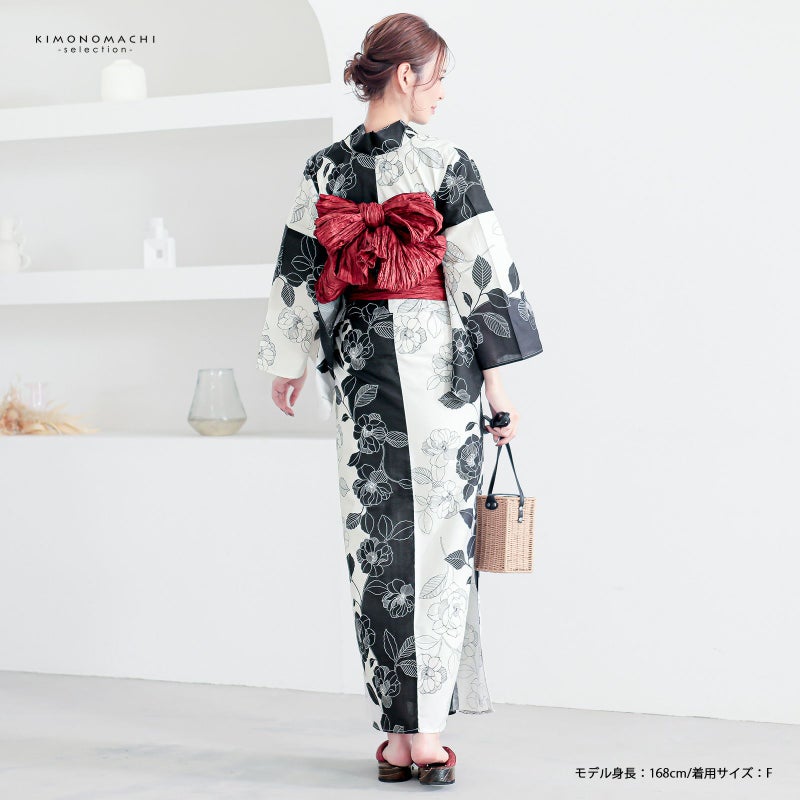5. 浴衣 レディース 女性浴衣 単品「黒×アイボリー 野ばら」Fサイズ 綿浴衣 プレタ浴衣 お仕立て上がり浴衣 ブランド浴衣 大人浴衣 女性用 女性浴衣 ゆかた【メール便不可】