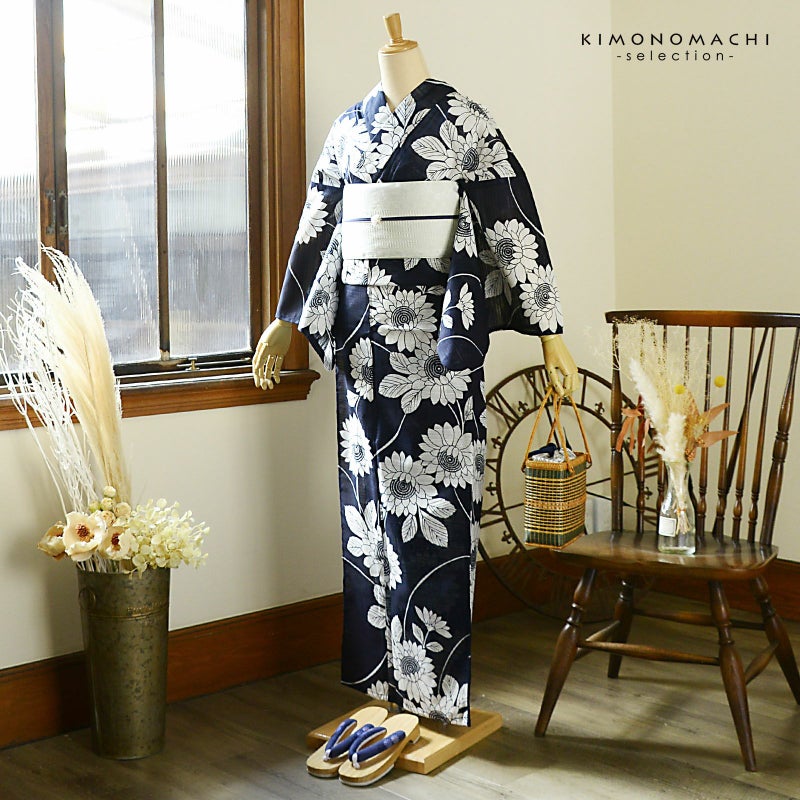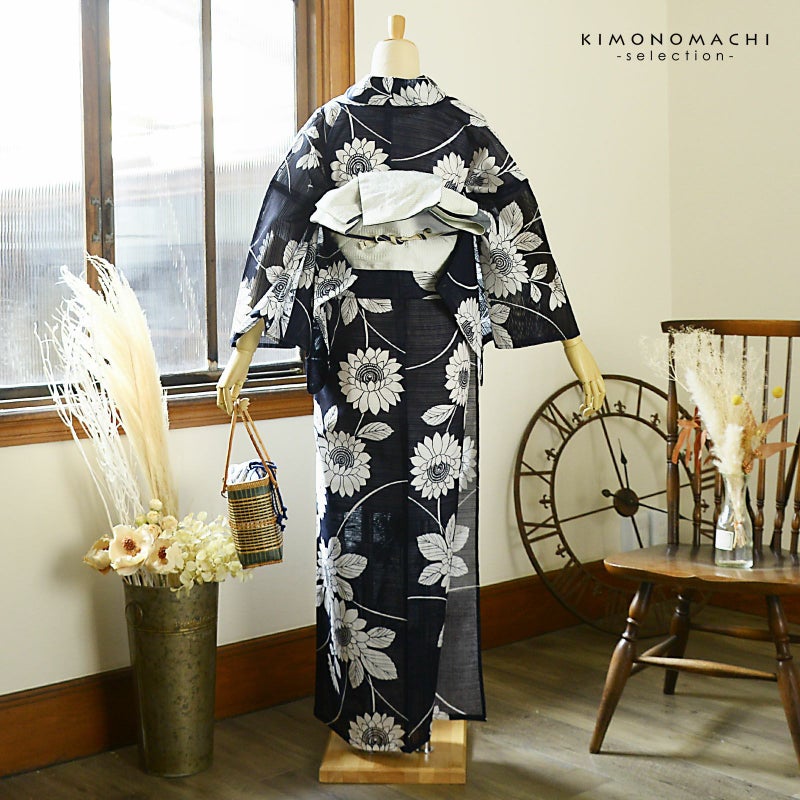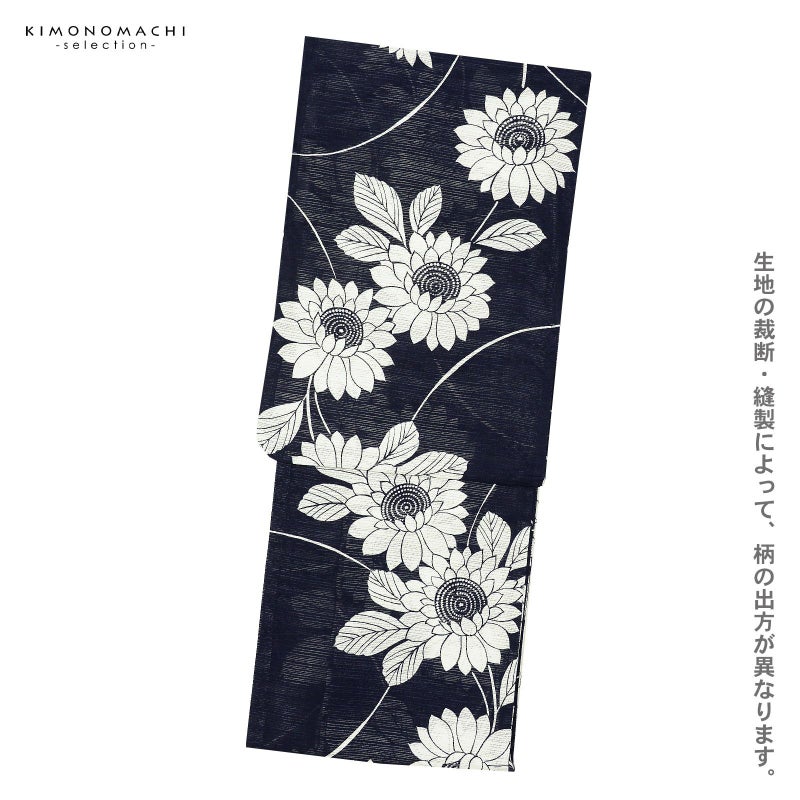 5. 浴衣 レディース 単品 お仕立て上がり浴衣 綿絽浴衣「ひまわり 濃紺」Fサイズ シック 大人 モダン 粋 古典 ゆかた 女性 ブランド浴衣 花火大会 夏祭り 綿 絽 夏着物にも【メール便不可】