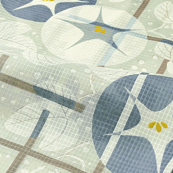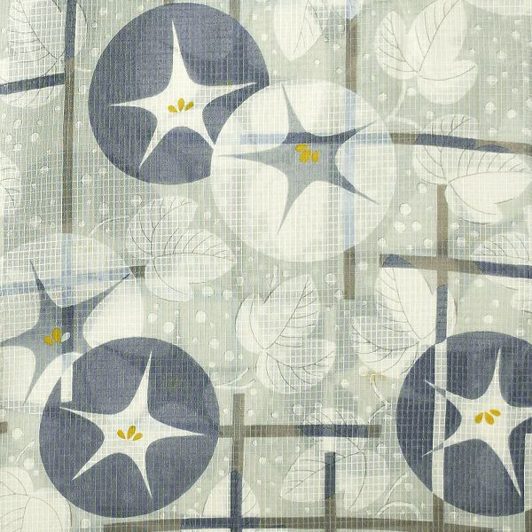 【色柄】薄いグレー地に格子と、ブルーグレーと白の朝顔。ドット模様がみずみずしさを表現。昭和初期に華麗な友禅図案を数多く発表し、一世を風靡した「山本雪桂」の図案を使用して誕生したレトロな浴衣です。