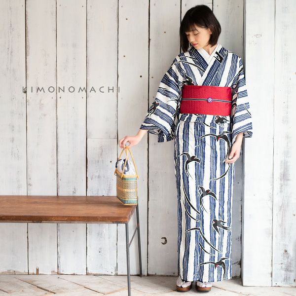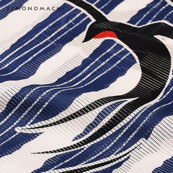 【色柄】白地に、紺色の縞と燕(つばめ)