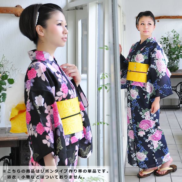 浴衣の帯結びが簡単!楽にできる!作り帯 結び帯 リボンタイプ「イエロー 麻の葉」文化帯 二部式帯 単帯 【メール便不可】