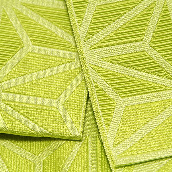 【カラー】黄緑色の、鮮やかなレタスグリーンの帯です。暗色系の浴衣や、ピンク系の浴衣に合わせても可愛くて、爽やかな雰囲気になります。