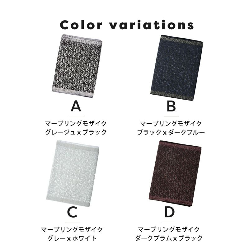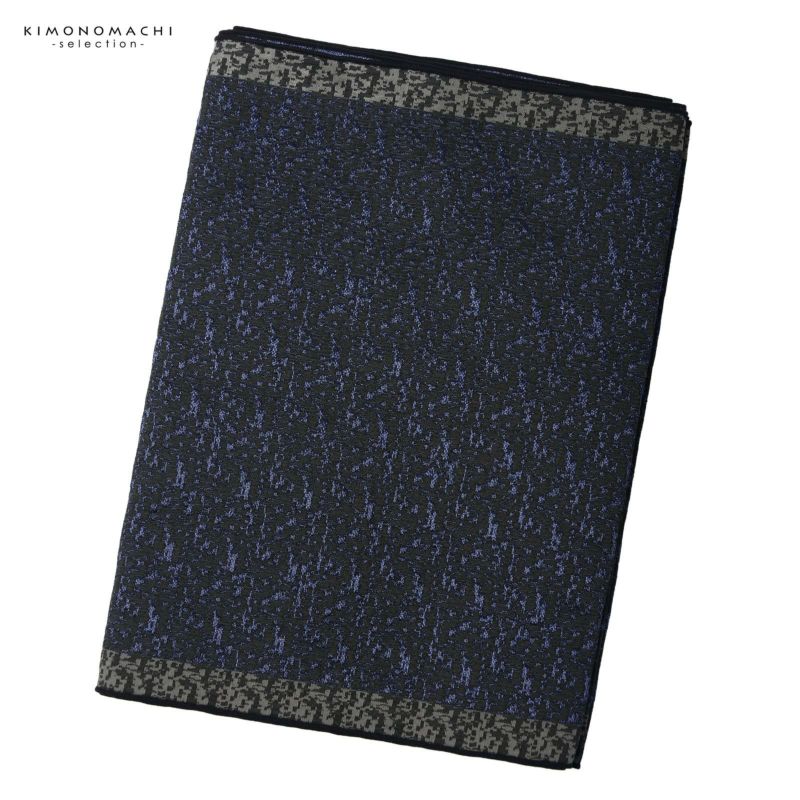 B.マーブリングモザイク ブラック×ダークブルー:光沢のある黒の地にダークブルーで織り出された霜降り調のモザイク文様。縁は黒とグレー。