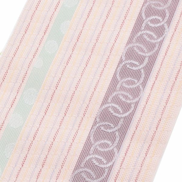 博多織紗夏帯「薄ピンク 輪繋ぎ」本築 ひとえ帯 半幅帯 本場筑前 献上 【メール便不可】<T>ss2306ohs15