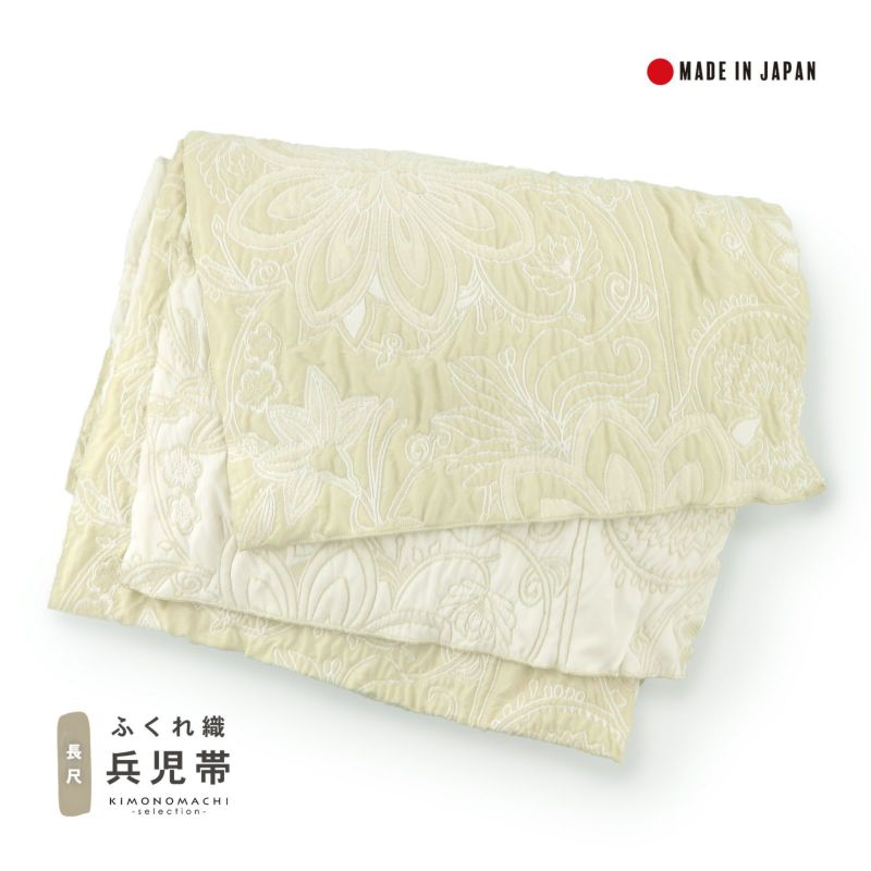 兵児帯 単品 帯 ふくれ織り 百華(MOMOKA)「アイボリー バインフラワー」日本製 ポリエステル帯 レディース 女性用 カジュアル 着物 浴衣【メール便不可】