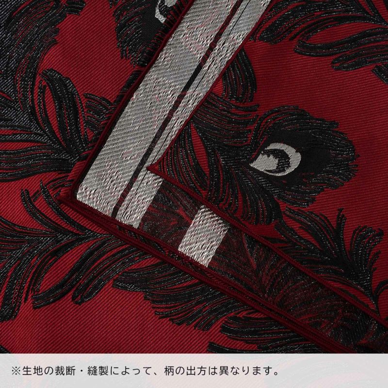 C.ピーコック ダークレッド:深い赤地に浅い黒で織り出された孔雀の羽模様。ポイントに黒、シルバー。