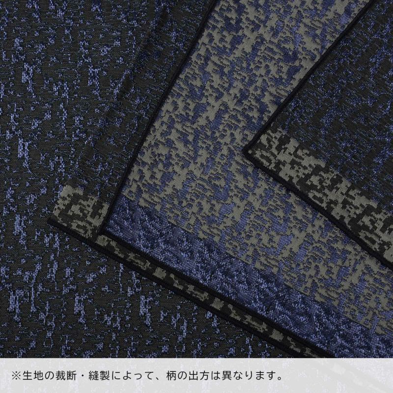 B.マーブリングモザイク ブラック×ダークブルー:光沢のある黒の地にダークブルーで織り出された霜降り調のモザイク文様。縁は黒とグレー。