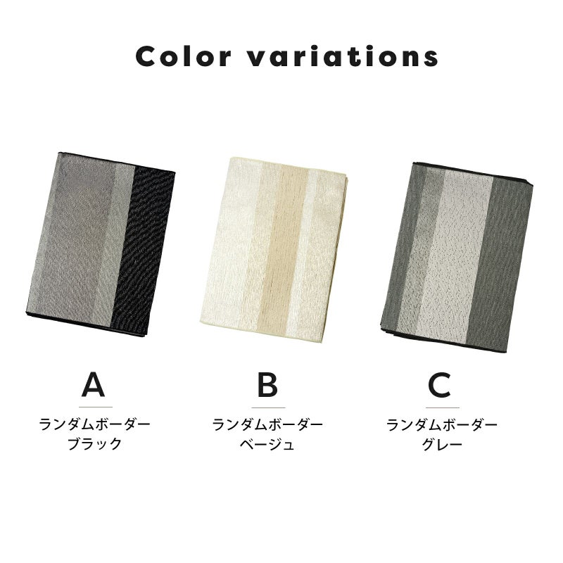 A.ランダムボーダー ブラック:銀通しのシボのある地に黒、ダークグレー、アッシュグレーのランダムなボーダー。