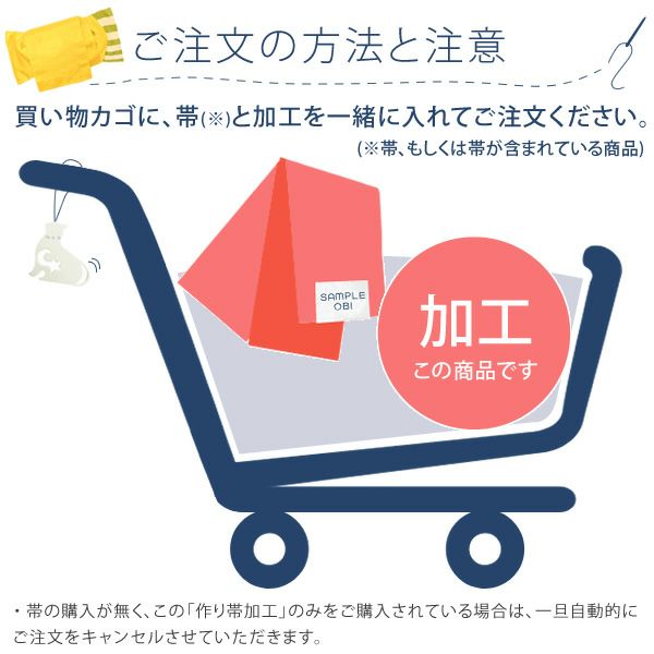 ・帯の購入が無く、この「作り帯加工」のみをご購入されている場合は、一旦自動的にご注文をキャンセルさせていただきます。