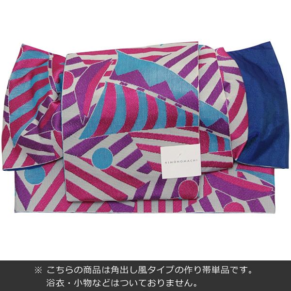 京都きもの町オリジナル 浴衣帯 角出し風タイプ結び帯単品「パープル 幾何学ヨット」京都きもの町オリジナル 小袋帯 ゆかた帯 半幅帯 <15浴衣帯11>【メール便不可】
