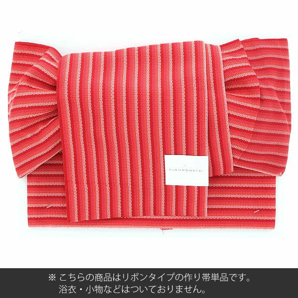 作り帯 京都きもの町オリジナル 浴衣帯 【Prices down】角出し風タイプ 結び帯単品「赤ピンク縞」京都きもの町オリジナル 浴衣帯 作り帯 付け帯 【メール便不可】ss2512oyk10