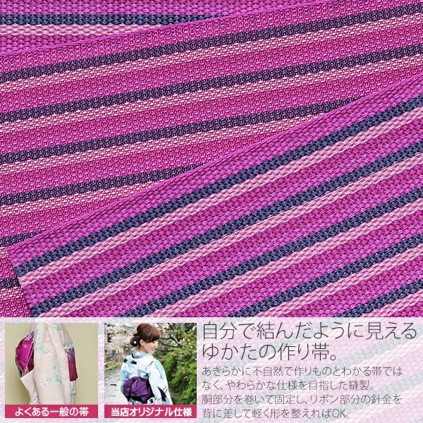 作り帯 京都きもの町オリジナル 浴衣帯 【Prices down】リボンタイプ 結び帯単品「パープル縞」京都きもの町オリジナル 浴衣帯 作り帯 付け帯 【メール便不可】ss2512oyk10